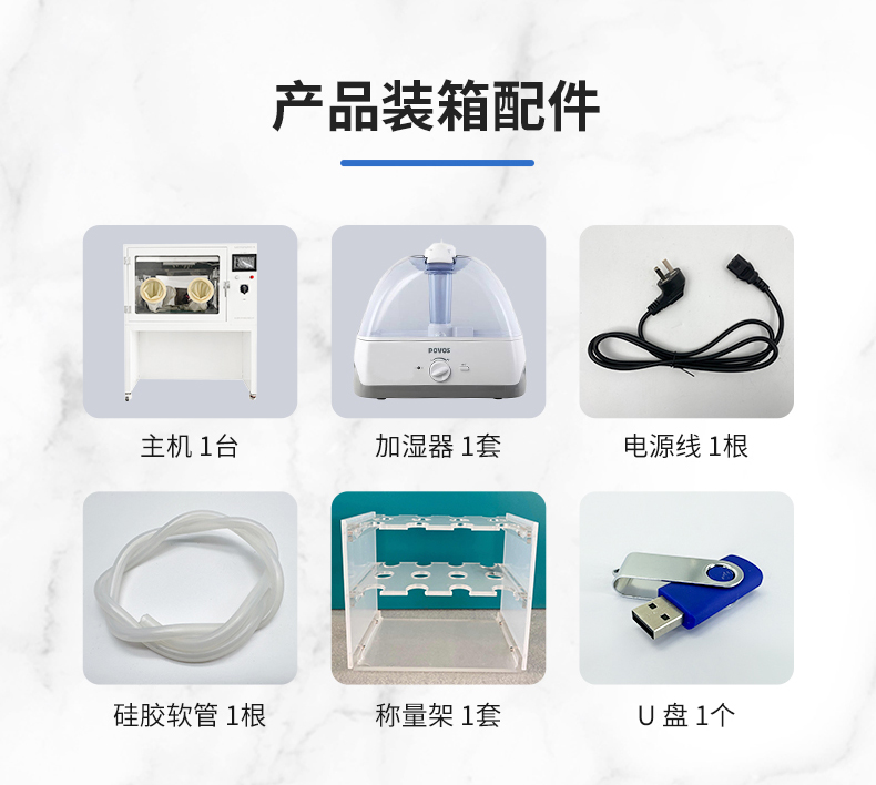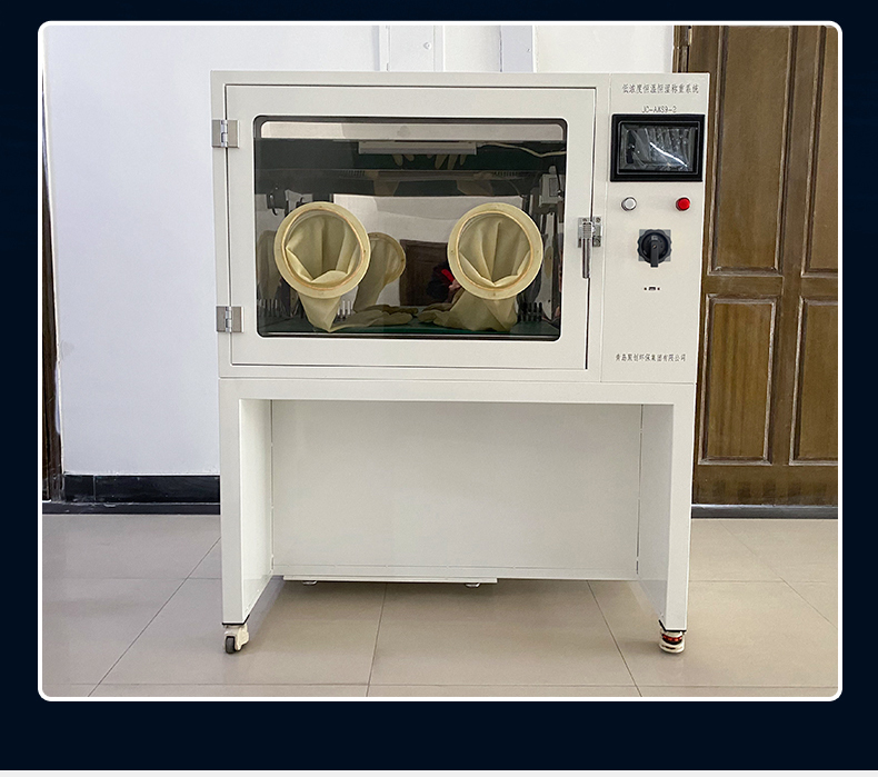 8.称量室采用一体化结构设计,密封性好,箱体上有两个操作入口,并用乳胶长手套进行隔离,方便人工操作实验。