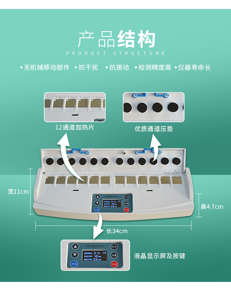 1、开机。按住面板上的【开/关】键约3s,仪器开机(开机后,再次按此键可关机);按【模式】键切换至“温度”,当温度达到40℃时,仪器发出一声提示音,预热完成,可以开始测试。