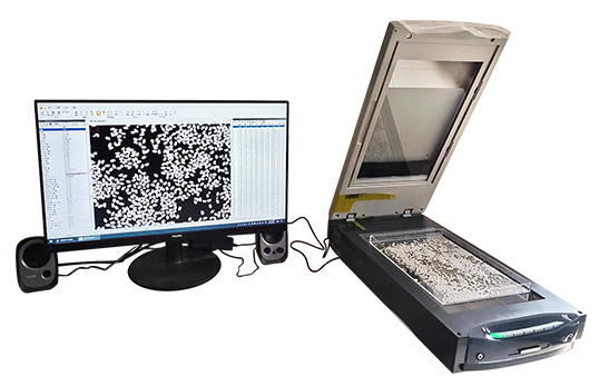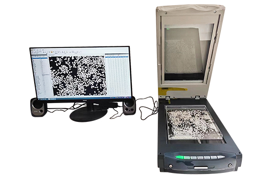 1、配光学分辨率4800×9600、A4加长的双光源彩色扫描仪来成像。透扫幅面30 cm×20 cm,最小像素尺寸0.0053mm ×0.0026 mm。可自动测量每粒样品的面积、长径、短径、长宽比、圆度、等效直径、整精米率、碎米率指标。
