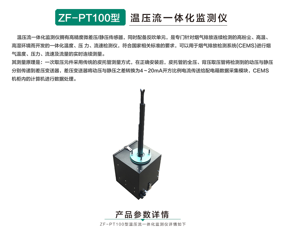 位置: 收米(中国) > 粉尘/颗粒物浓度检测 > 烟尘烟气在线监测 > ZF-PT100温压流一体化监测仪