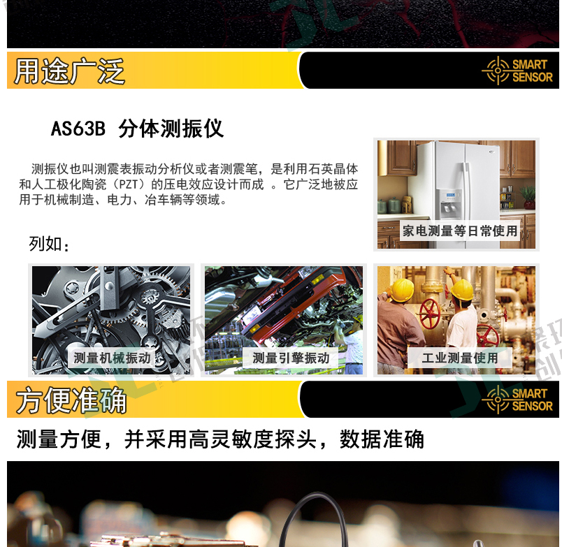 AS63B分体式测振仪是利用石英晶体和人工极化陶瓷(PZT)的压电效应设计而成。