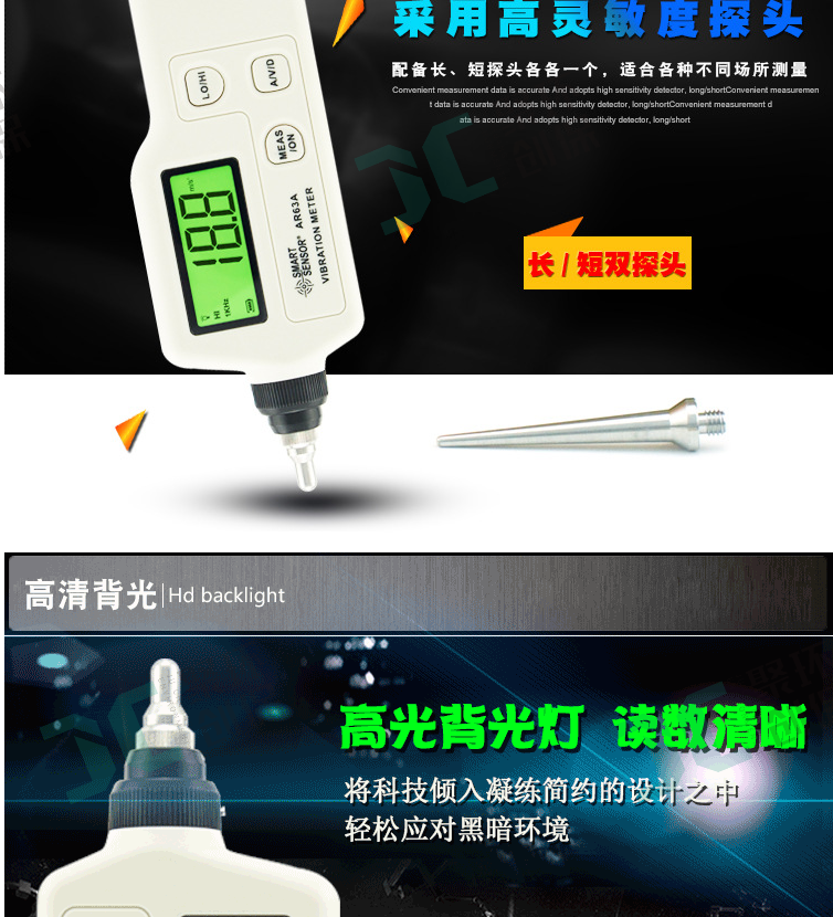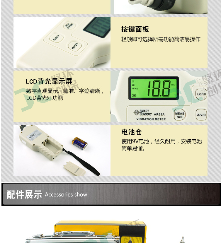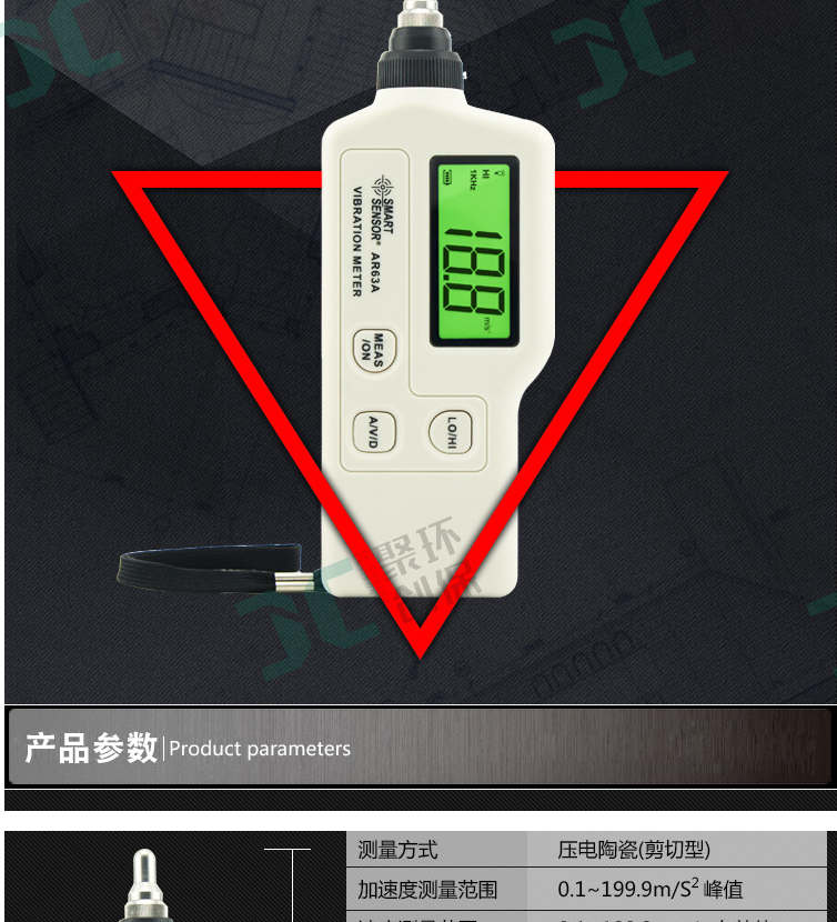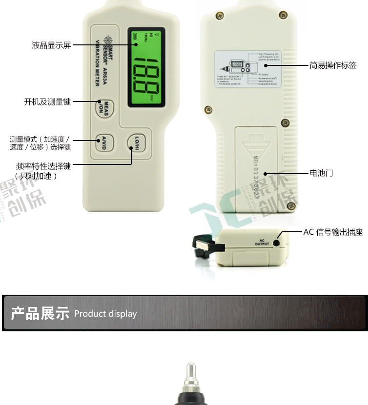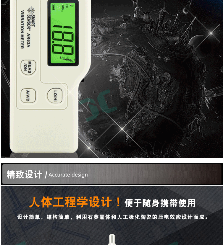 AS63A手持测振仪采用人工极化陶瓷压电效应设计而成。