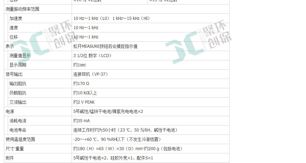 1. 测量范围:加速度:0.1~199.9m/s2 peak(RMS×1.414)