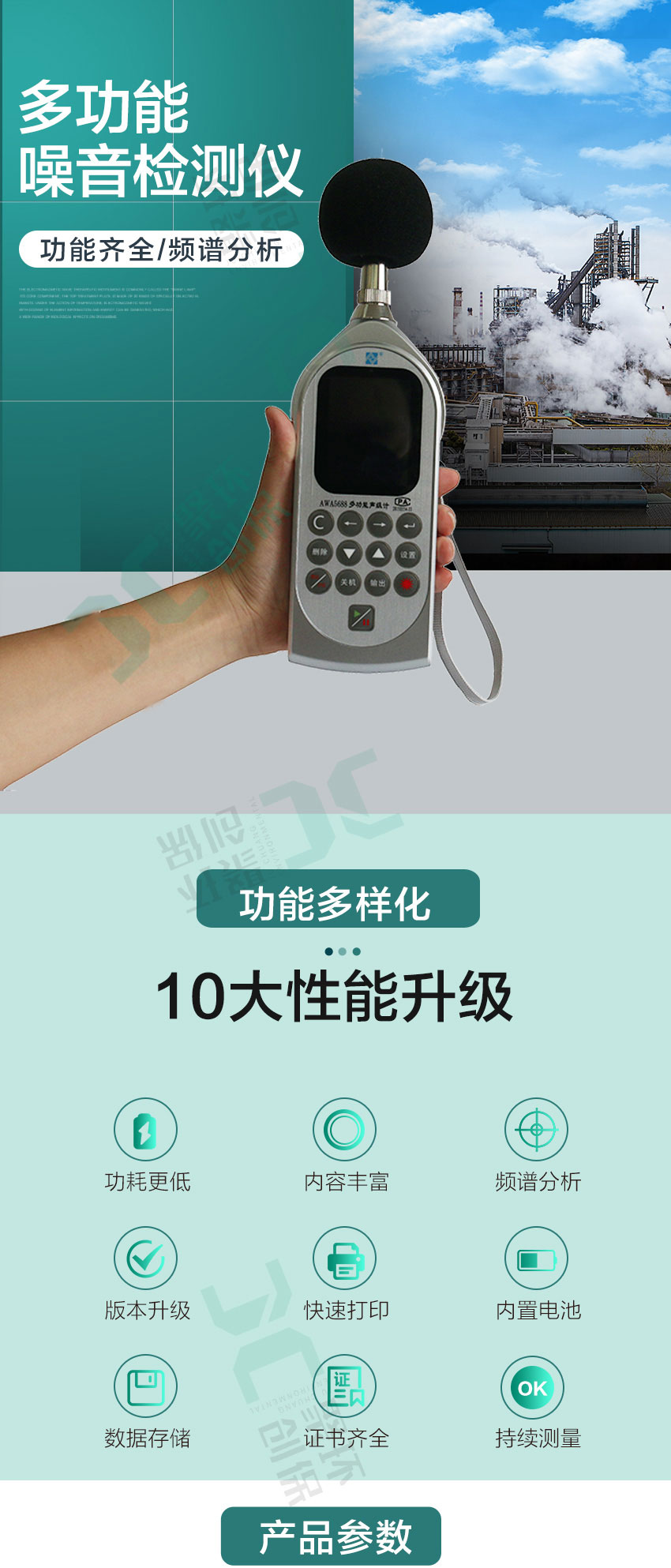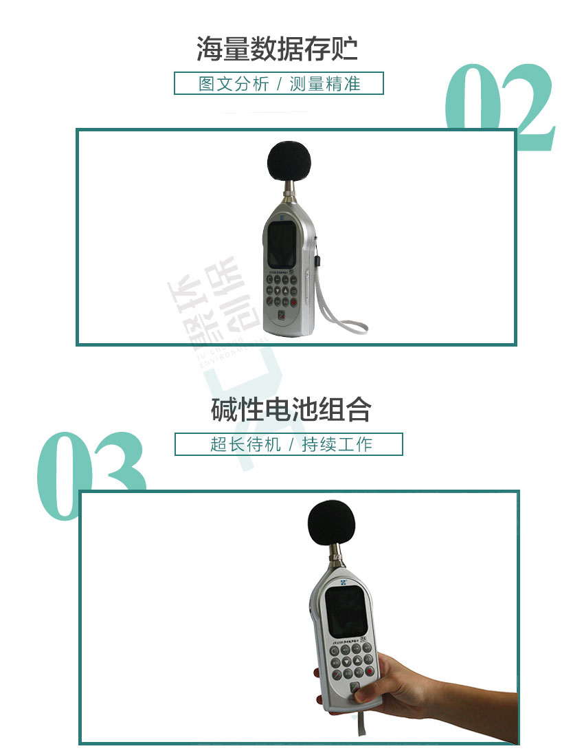 2.频率计权、时间计权、检波全部采用数字信号处理技术实现,同时完成A、C、Z三种频率计权、F、S、I三种时间计权等多种指标的测量。