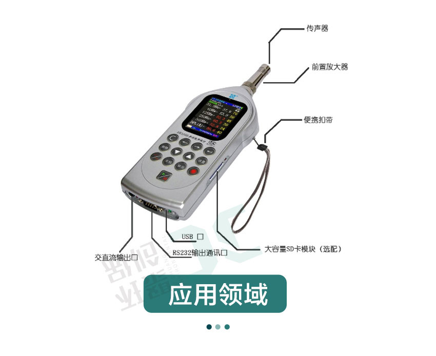 该仪器可广泛应用在环境保护、劳动卫生、工业企业、科研教学等领域,完成环境噪声测量、声功率级测量、机器设备噪声测量以及建筑声学测量。