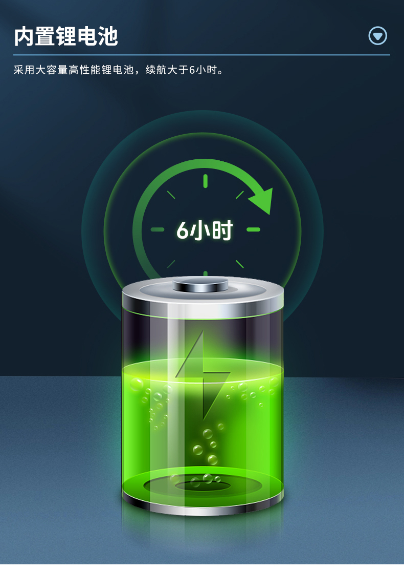 2.手持轻量化设计,充电时间小于续航时间6小时以上。