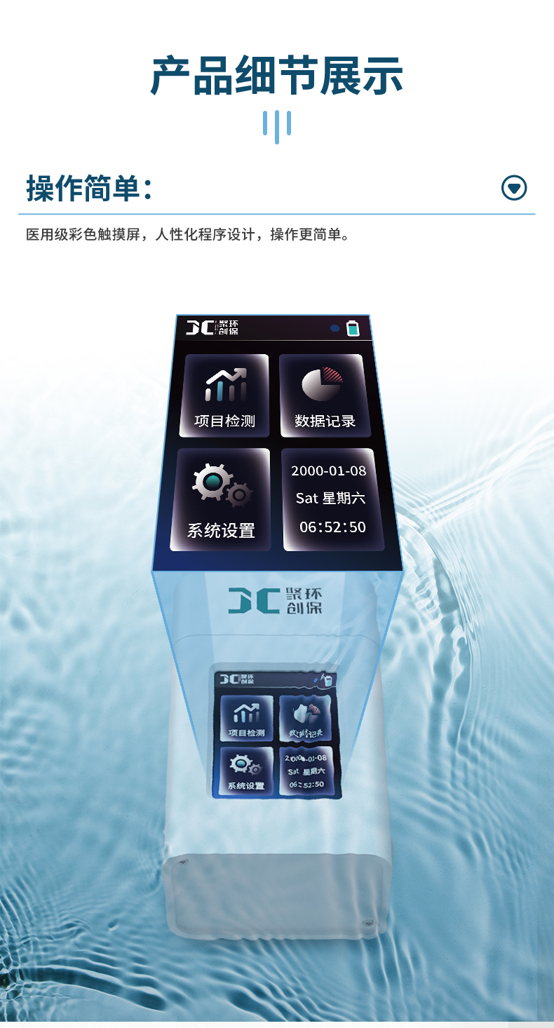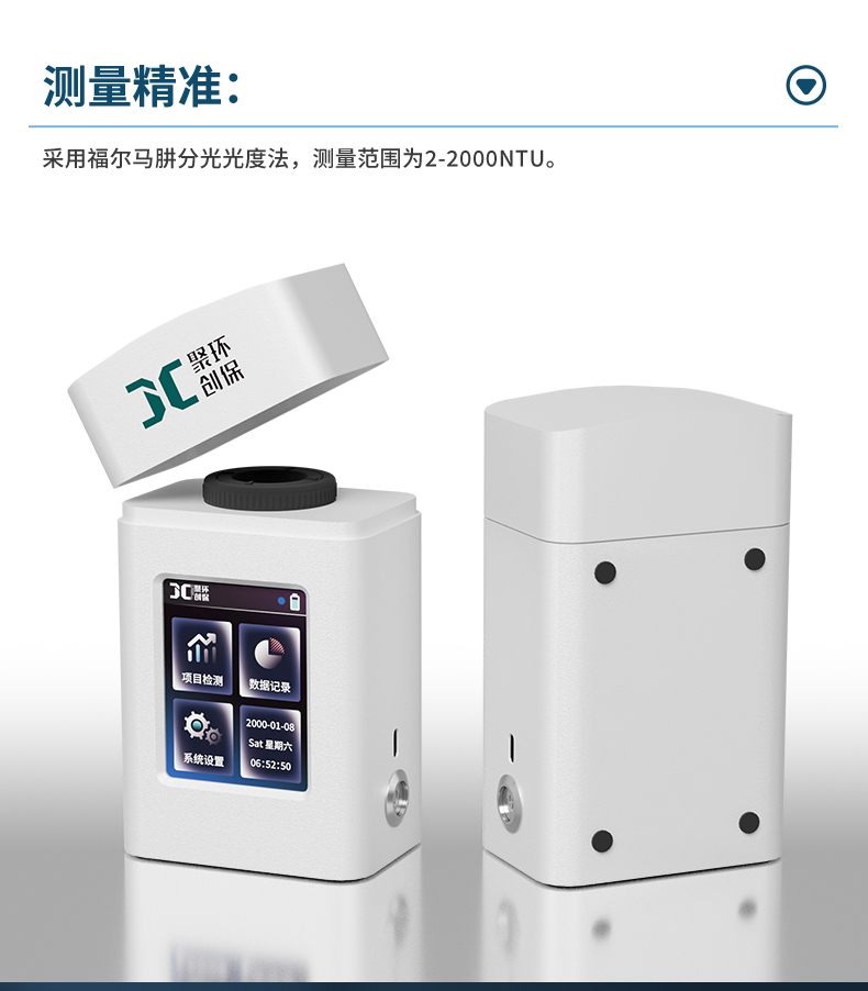 聚创JC-ZDY-01型手持式浊度仪具有体积小、重量轻、操作方便等特点,可以实时、准确地测量水样中的浊度,从而帮助用户了解水质清洁程度和颗粒物含量。该产品通常采用光学透-散射原理进行测量,并配备简洁的操作界面和便携式外观,便于用户随时随地进行浊度测试。