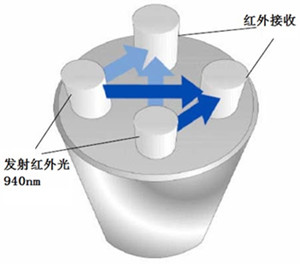 注:红外接收采用高精度的940nm光强转换为频率的集成电路芯片,使接收到的光强转变为数字信号。