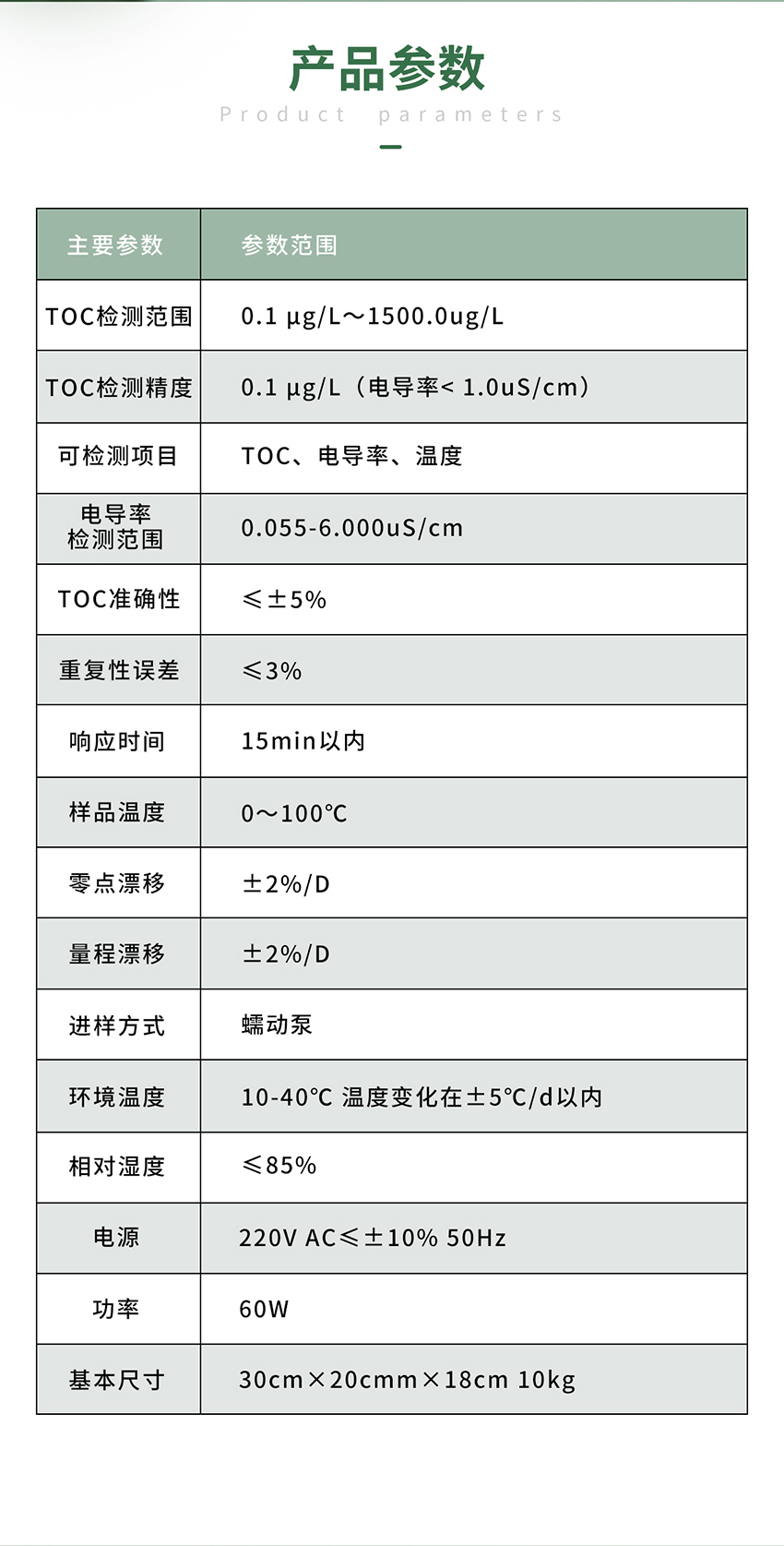 JC-CD-600型总有机碳分析仪是自主研发生产的用于测定水样中总有机碳 浓度的分析仪器,可以检测TOC浓度从0.1µg/L~1500.0µg/L的水样,具有高灵敏度和精确度,以及好的稳定性。 本分析仪广泛的满足客户的要求,软件操作便捷,快速的进行样品分析、分析仪校准和检验。