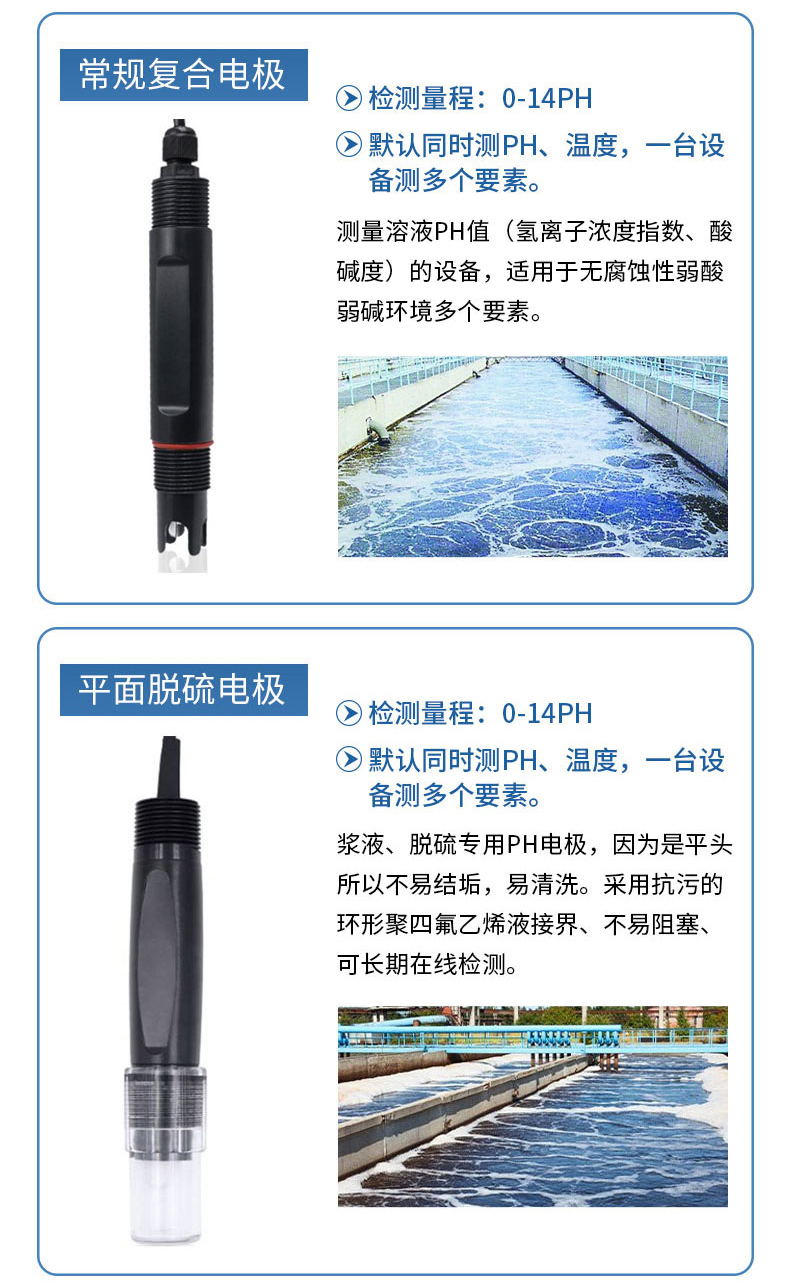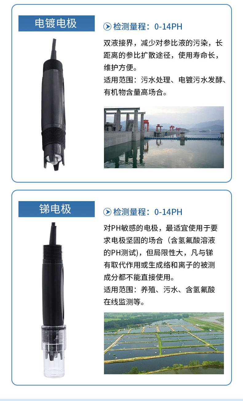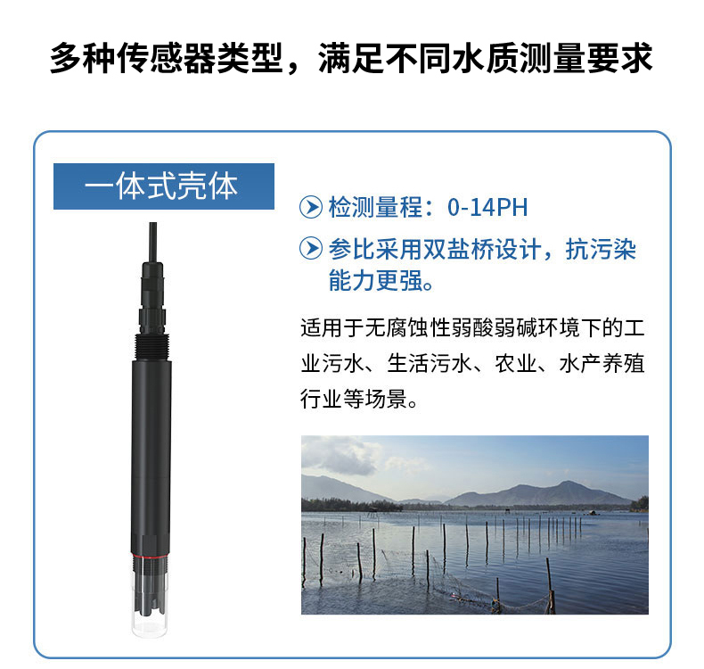 1.一体化PH探头设计,测量范围宽,自带温度补偿,反应灵敏;