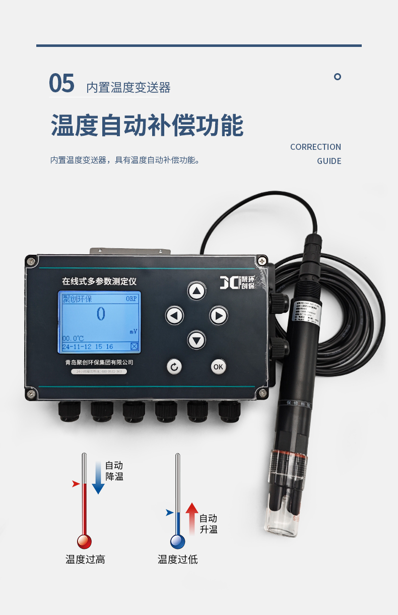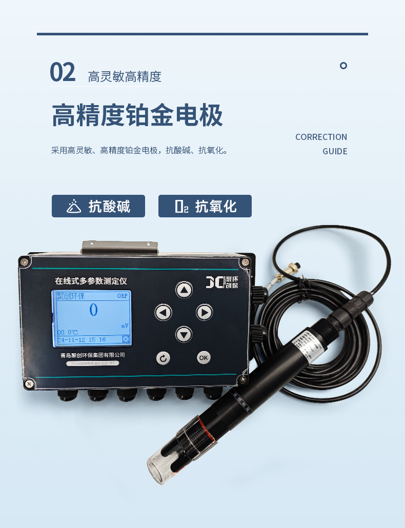 聚创JC-ORP9000系列在线式ORP计是我公司自主研发的一款测量溶液氧化还原电位的仪器,可用来实时监测溶液中的ORP及水温。仪器采用高纯度铂金制成的ORP复合电极,具有极强的抗酸碱能力和抗氧化能力,测量精度高、响应快、稳定性好,电极可根据温度自动补偿。仪器适用于含氰、含铬废水等氧化还原电位的在线监测。仪器可通过RS485或电流变送远传到监控室进行记录保存。