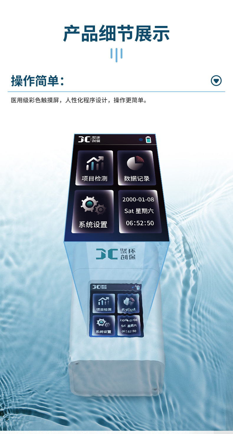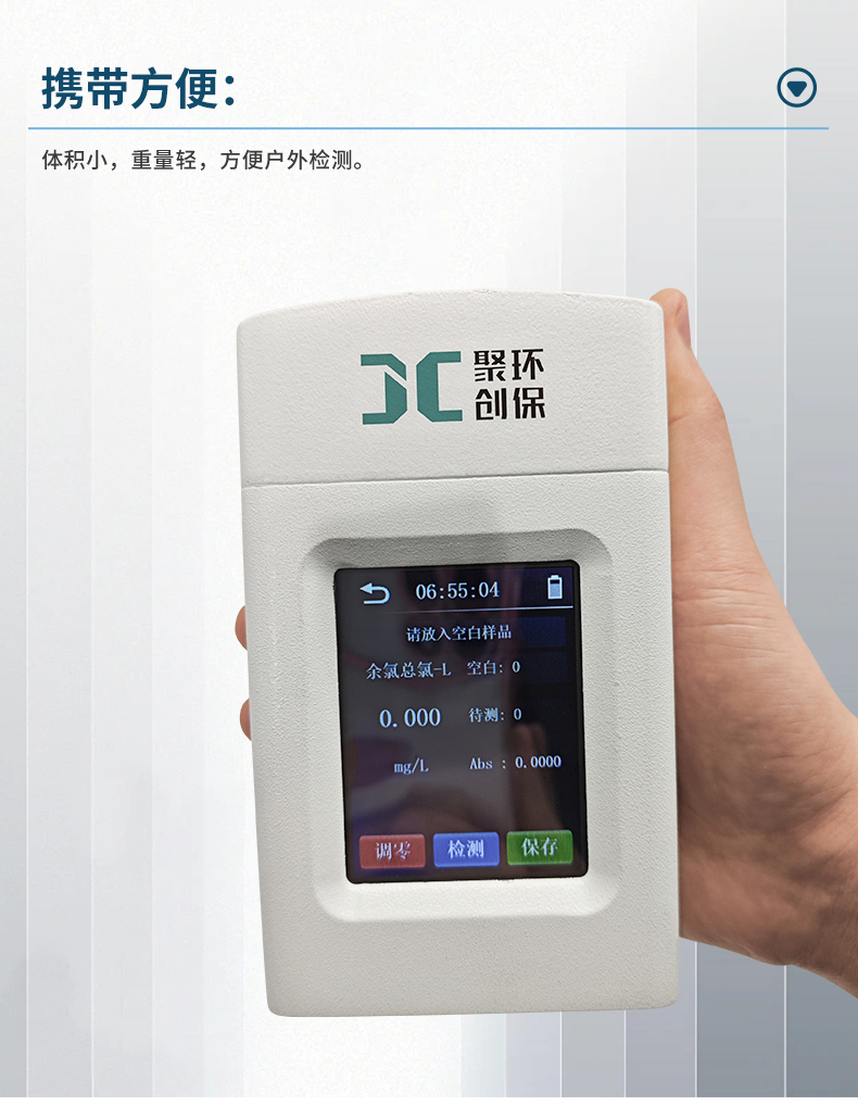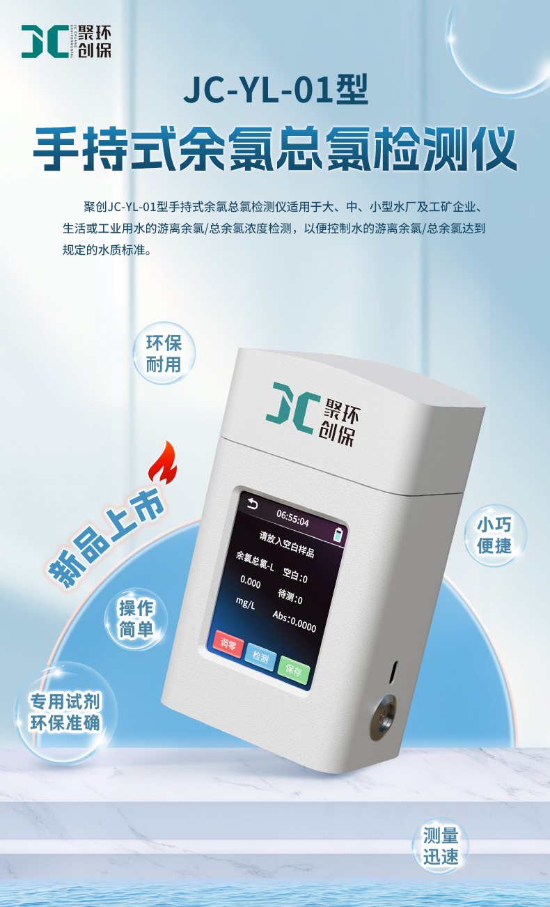 聚创JC-YL-01型手持式余氯总氯检测仪适用于大、中、小型水厂及工矿企业、生活或工业用水的游离余氯/总余氯浓度检测,以便控制水的游离余氯/总余氯达到规定的水质标准。