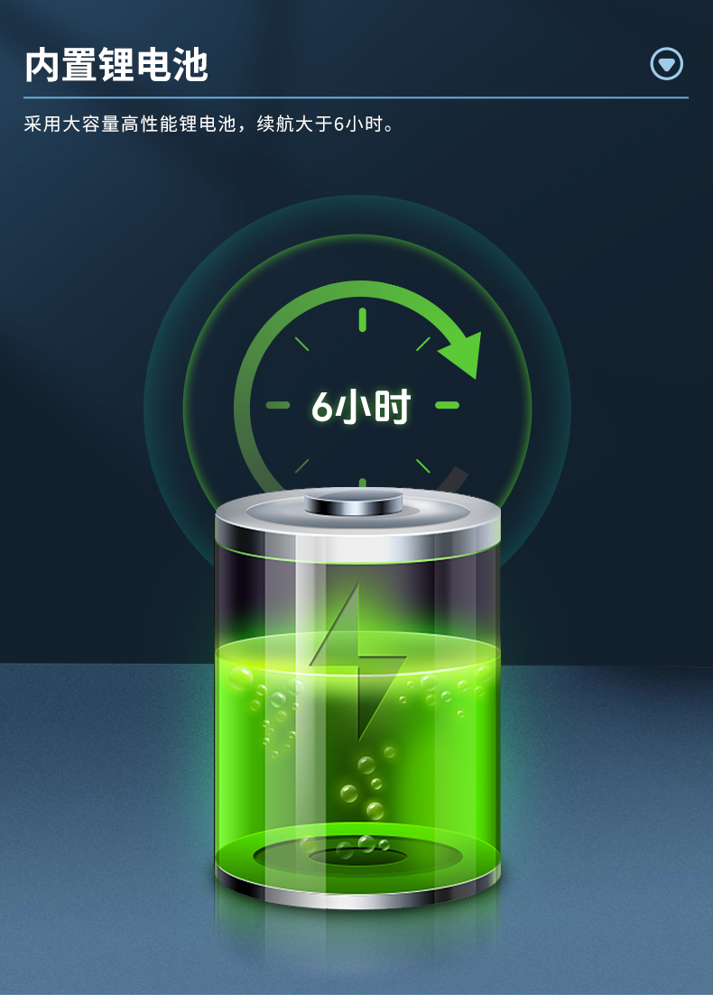 2.手持轻量化设计,充电时间小于4小时,续航时间6小时以上。