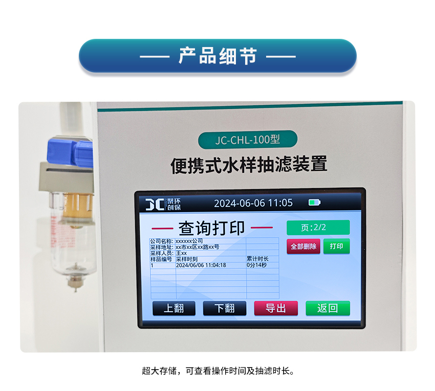 7.带有超大存储,可查看操作时间、抽滤时长,最大可存储 3000 组数据。