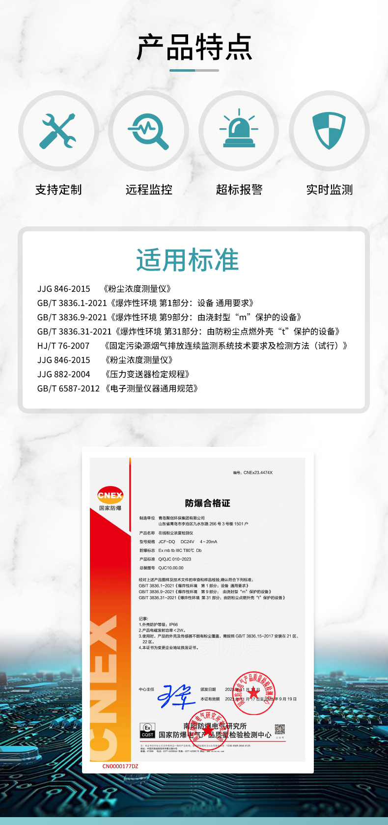 1、采用最先进的实用技术—专利改进型交流耦合技术,对粉尘的探测灵敏度高,线性度好。