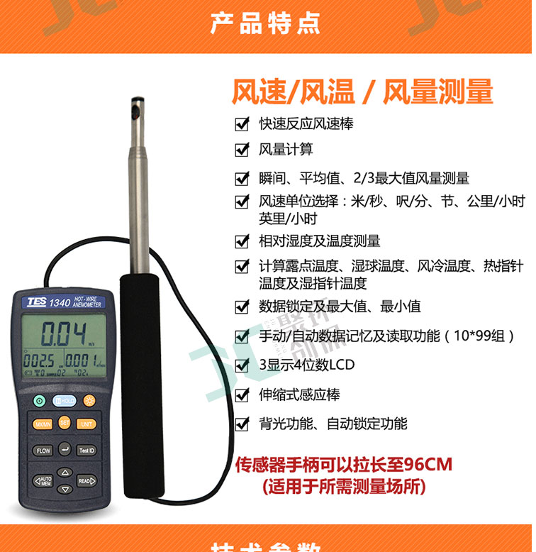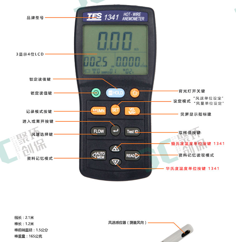 TES-1341多功能热线式风速计能使用于任何处所以测量风速、温度及相对湿度。