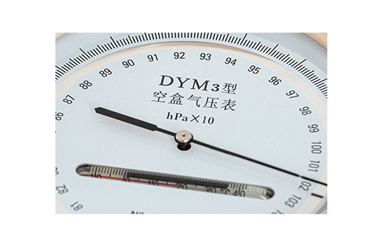 DYM3型空盒气压表是以变形元件作感应的一种大气压测量仪器。它以携带方便、测量准确,测压范围广、使用维护简便、无汞污染等优点。