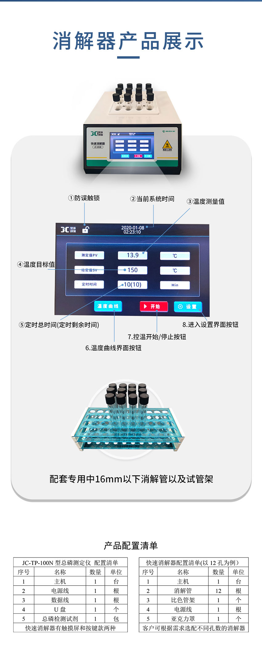 1. 集成双功能5英寸彩色触摸屏,可同时兼顾消解和检测,人性化的操作界面,便捷又高效。