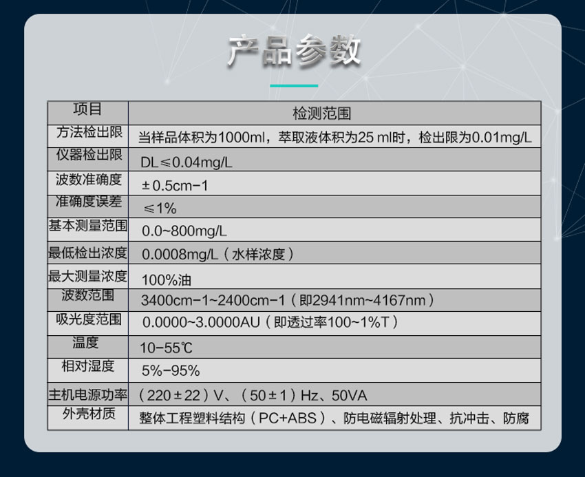 30~40mg/L油标样测定11次 RSD≤0.6%或0.5mg/L水样RSD≤5%