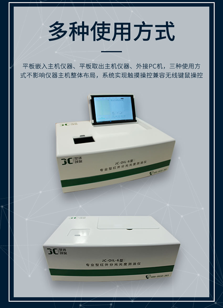 8、软件系统:采用双系统分析,分别满足四氯化碳或四氯乙烯做萃取剂的使用方法。