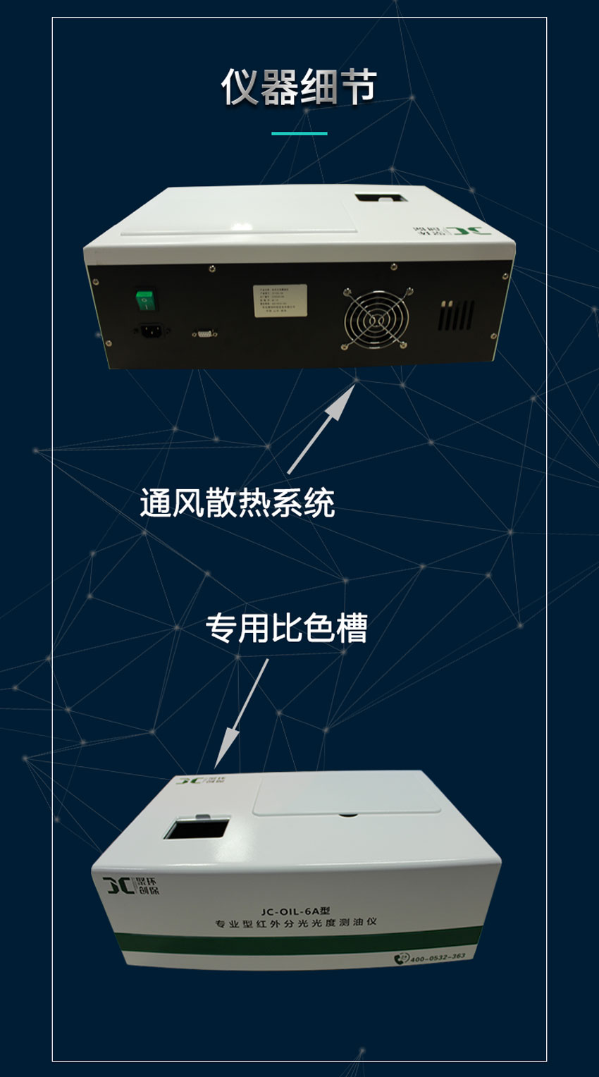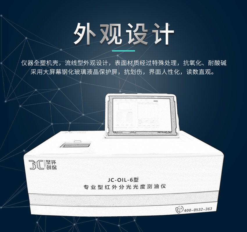 JC-OIL-6红外分光测油仪根据HJ637-2018标准,用四氯乙烯和四氯化碳萃取样品中的油类物质,测定总油,然后将萃取液用硅酸镁吸附,除去动植物油类等极性物质后,测定石油类。总油和石油类的含量均由波数分别为2930cm-1(CH2基团中C-H键的)、2960cm-1(CH3基团中C-H键的伸缩振动)和3030cm-1(芳香环中C-H键的伸缩振动)谱带处的吸光度A2930、A2960和A3030进行计算。动植物油的含量按总萃取物与石油类含量之差计算。