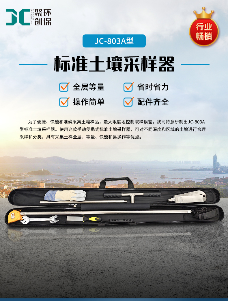为了便捷、快速和准确采集土壤样品,最大限度地控制取样误差,我司特意研制出JC-803A型标准土壤采样器。使用这款手动便携式标准土壤采样器,可对不同深度和区域的土壤进行合理采样和分类,具有采集土样全层、等量、快速和易操作等优点。
