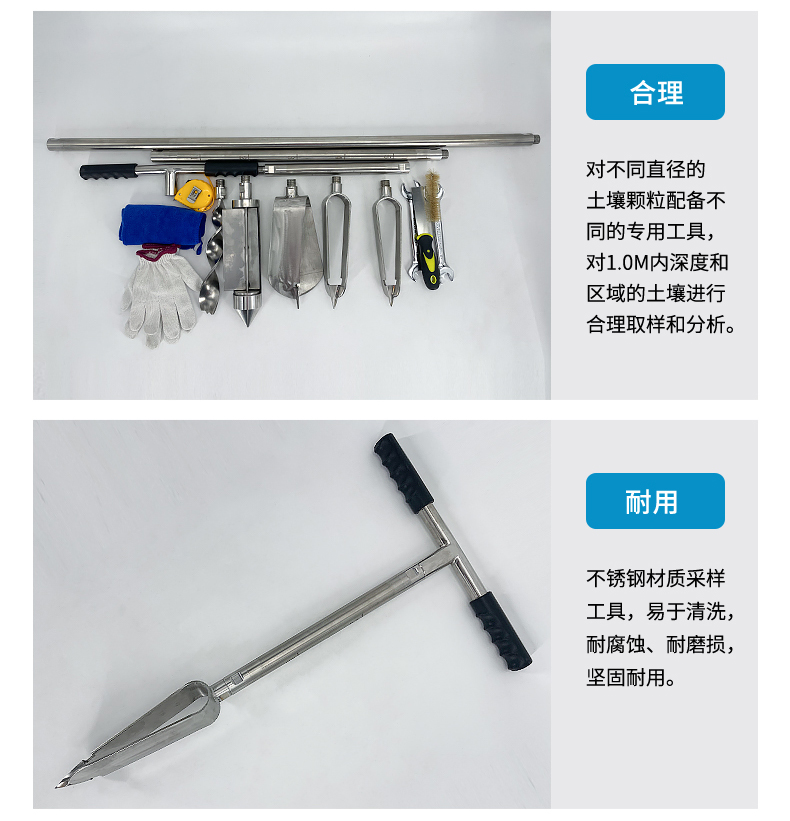 可针对不同直径的土壤颗粒配备不同的专用工具,对1.0m内深度和区域的土壤进行合理采样和分析。专业应用于科研、实验等土壤采样过程,可针对不同直径的土壤颗粒配备不同的专用工具,对1.0m内深度和区域的土壤进行合理采样和分析。