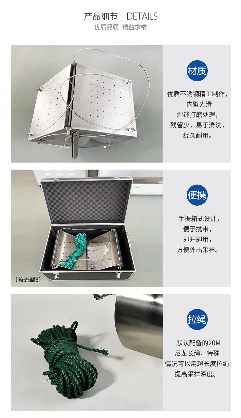 (5)采样深度:20米 (特殊情况可以用超长度拉绳提高采样深度)