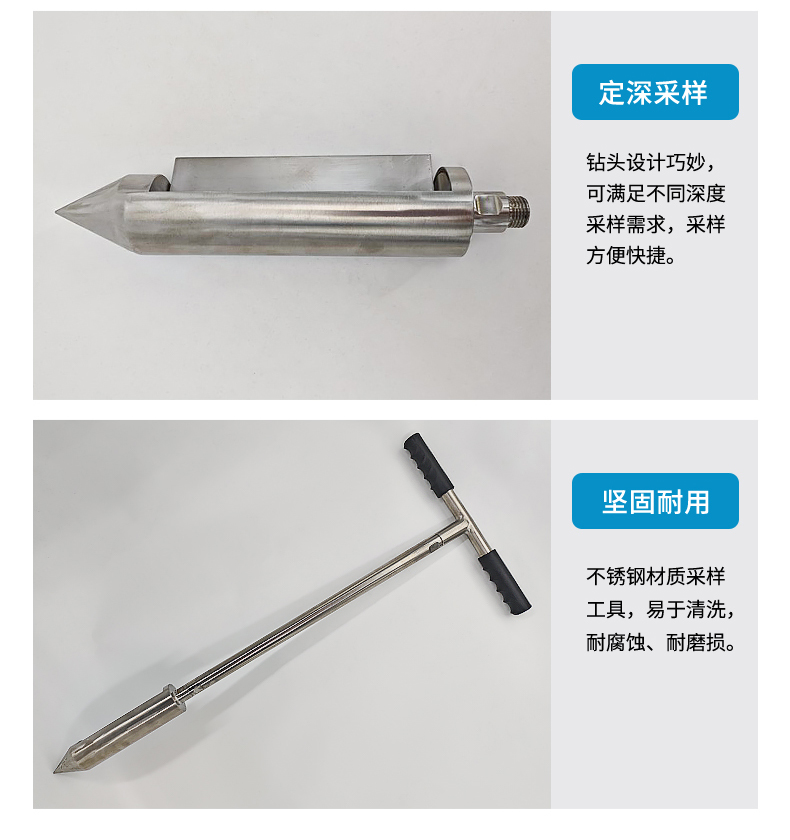 6.不锈钢材质采样工具,易于清洗,耐腐蚀、耐磨损,坚固耐用。
