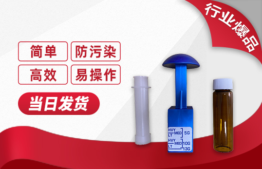 安装注射套筒于采样手柄上,采集5g、10g或者13g样品(量程可调)于套筒中,然后直接注射进VOC采样瓶中(40mL棕色瓶),然后盖上瓶盖。手柄,可反复使用。兼具样品储存功能,适合各类土壤类型。满足高效和清洁要求。