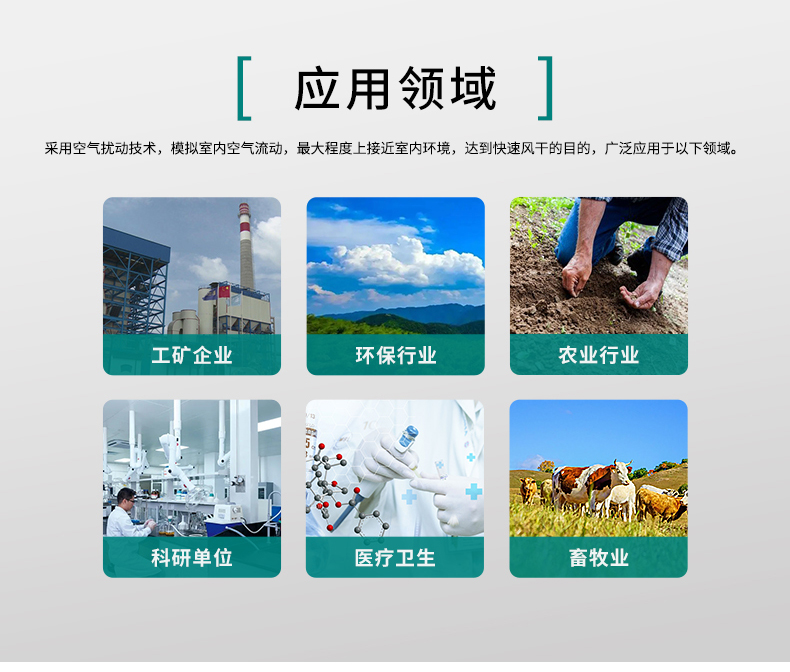 1、采用空气扰动技术,模拟室内空气流动,大程度上接近室内环境,达到快速风干的目的。