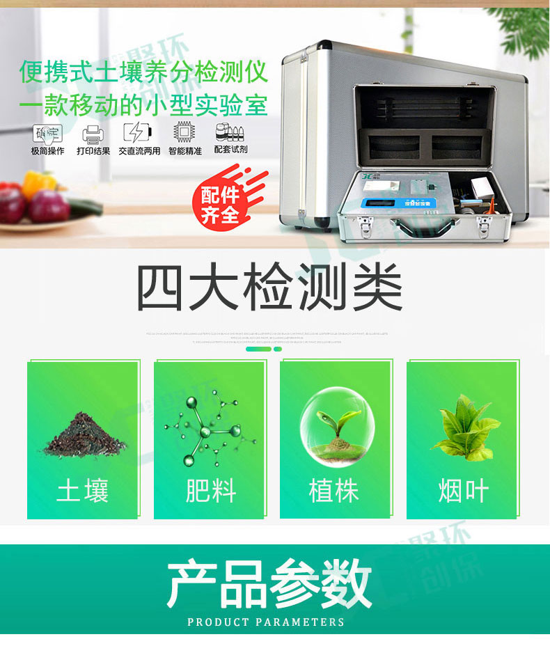 土壤养分:▲铵态氮、硝态氮、磷、钾、有机质、全氮、pH值、水份、碱解氮等九项; ▲ 中微量元素:钙、镁、硫、铁、锰、硼、锌、铜、氯、硅等。