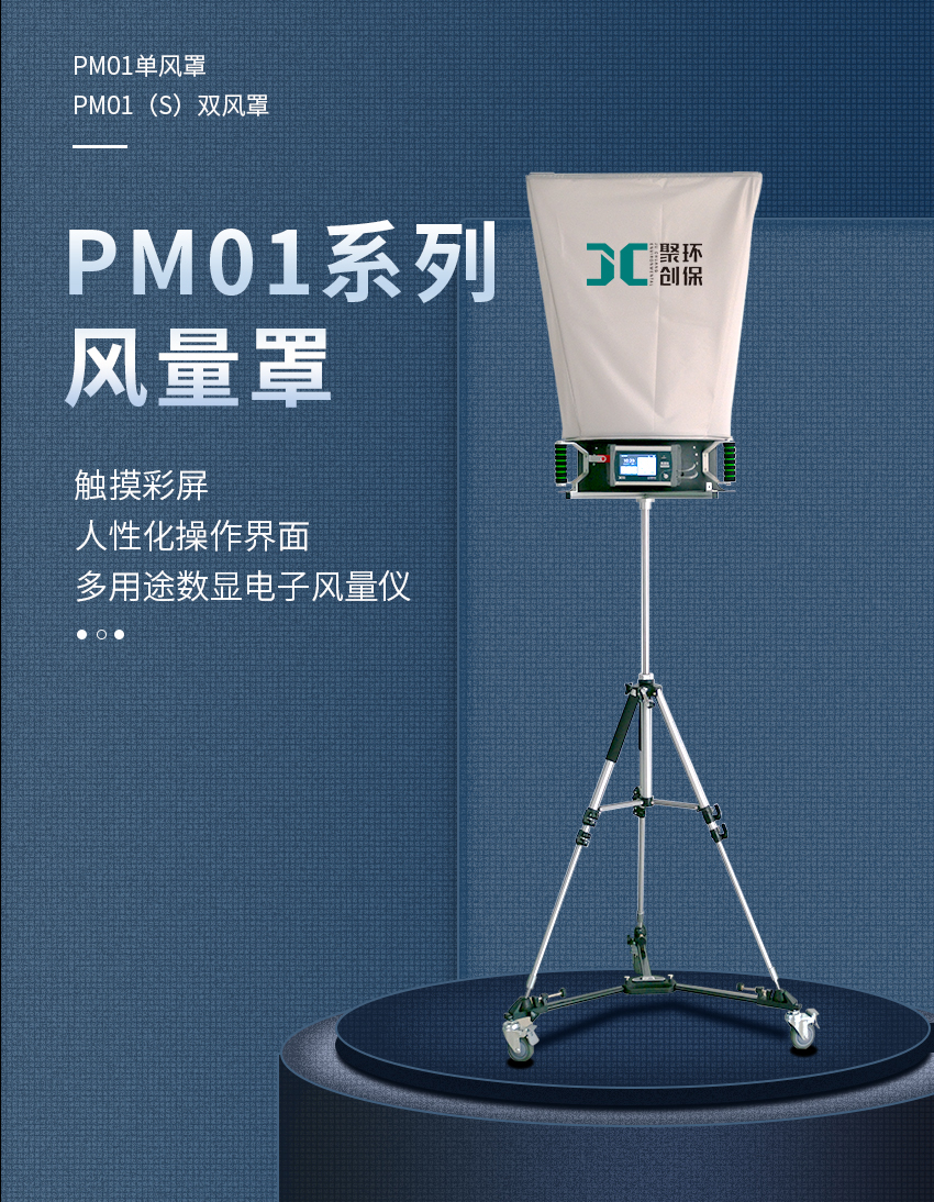 聚创PM01(S)型风量罩(以下简称风量罩)采用皮托管式原理,对风压进行多点、多次自动检测,产生平均风量(m³/h),具有正确、快速、简便的特点,广泛应用于暖通空调、净化技术等行业进行风口和管道风量的直接测定,从而对集中空调的风量实施综合管理及温度、湿度、洁净度等参数的自动控制。