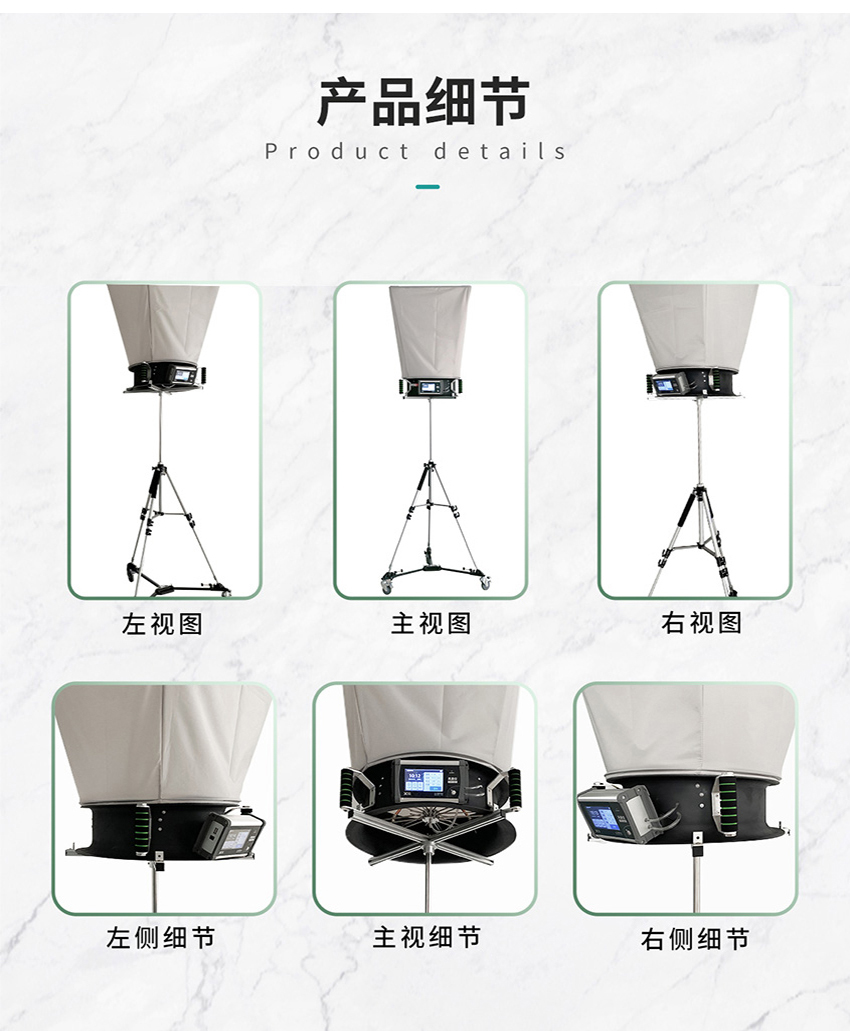 8.升高高度:支架210cm,风罩高度90cm,整体可升高至300cm 。