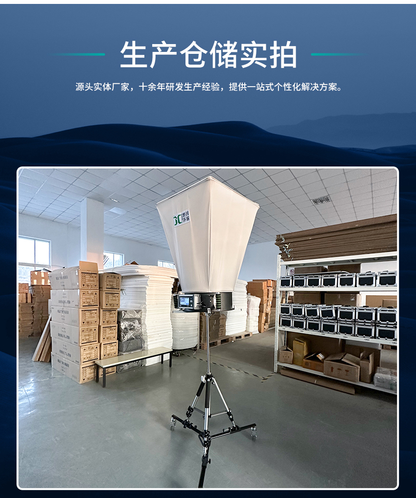 为了方便客户现场检测工作,我们专门配备了移动式支架,可升高2.1m(含风量罩本体0.9m),整体可升至3m。PM01(S)型风量罩可以进行送风口和回风口的测量,为测试带来便利。每一台风量罩的出厂都通过严格的0.5级标准风洞标定装置进行多点风量校正,为用户直接测定风量提供可靠的保证。