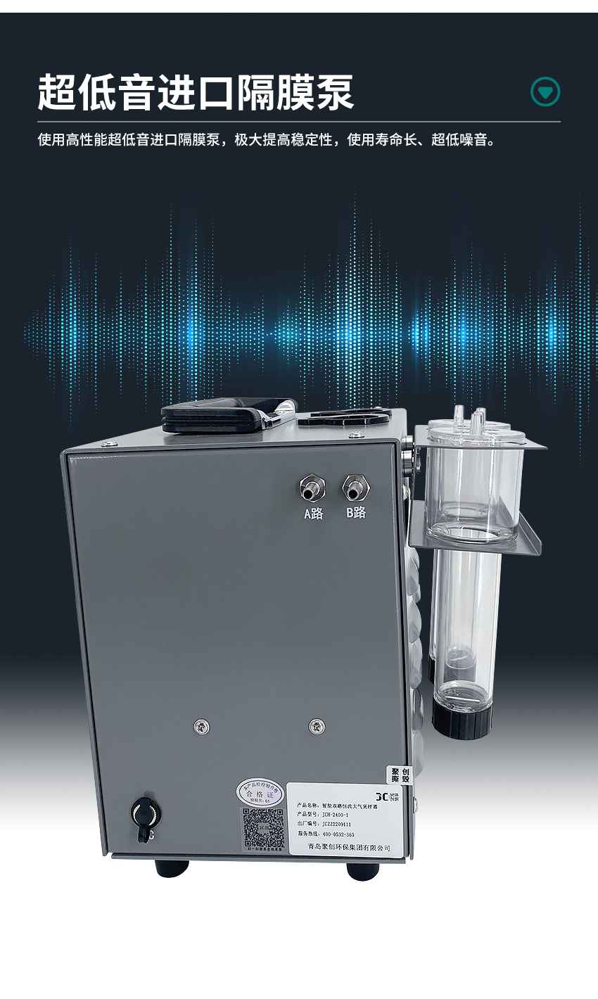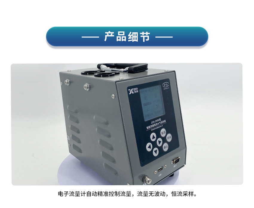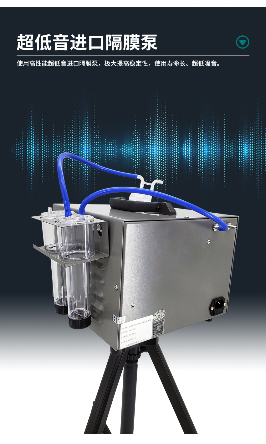 2、电子流量计自动精准控制流量,流量无波动,恒流采样;
